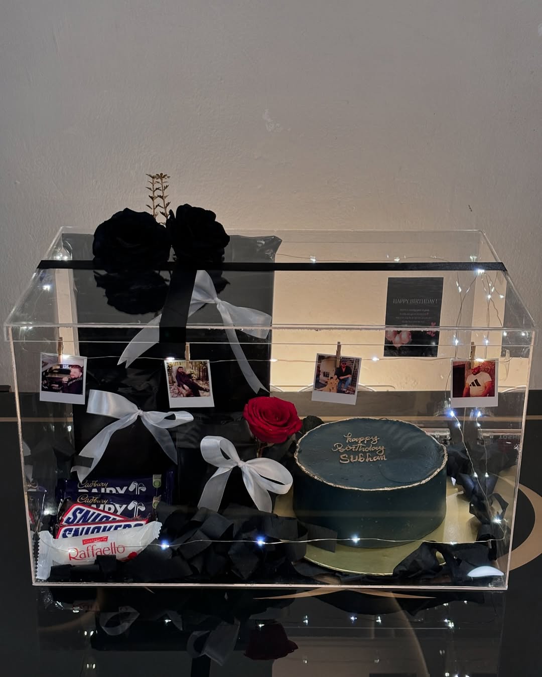 • Sweet & Personal: The customized cake and Polaroids offer a personal and memorable touch, making the gift more meaningful and unique.